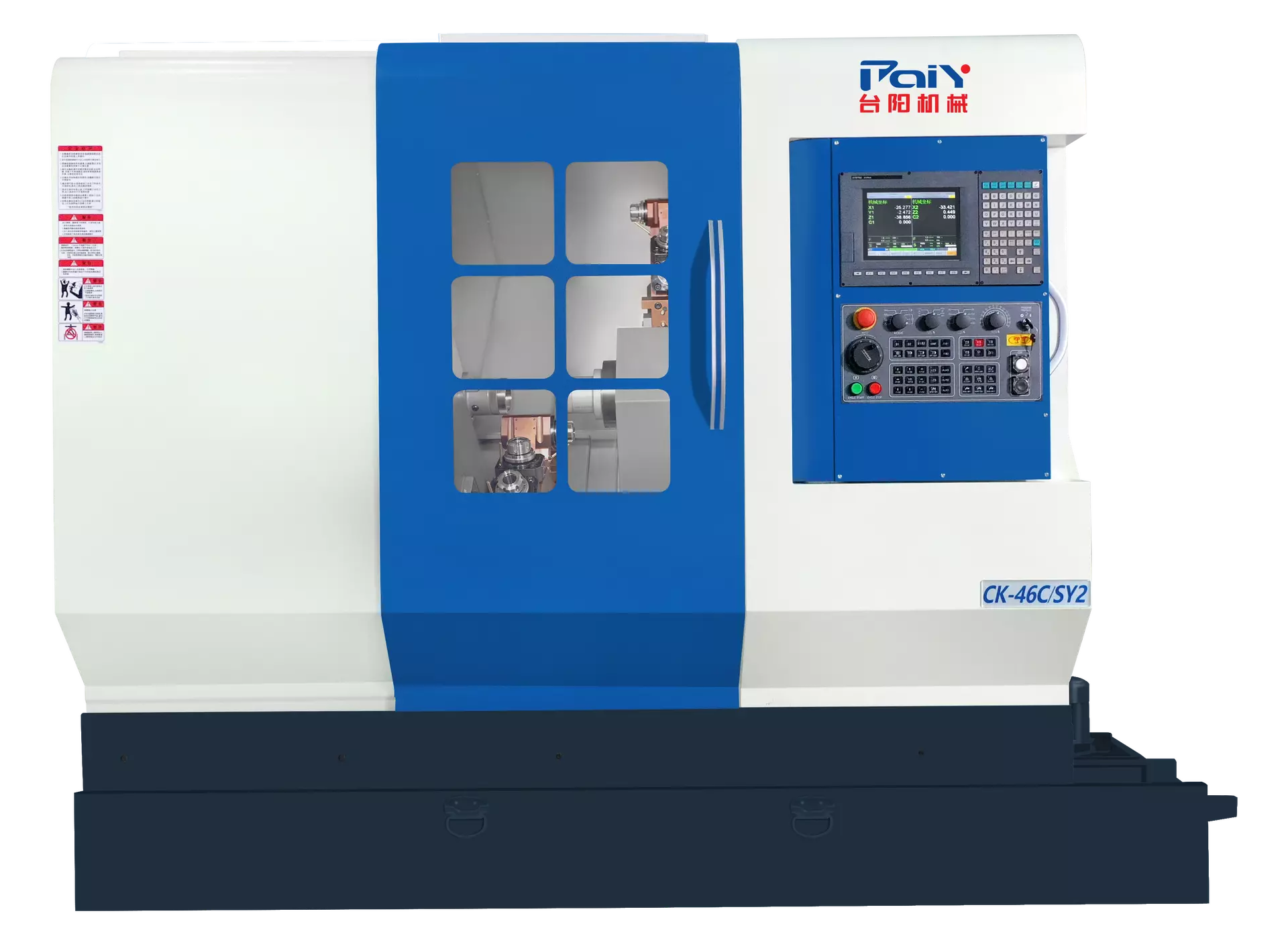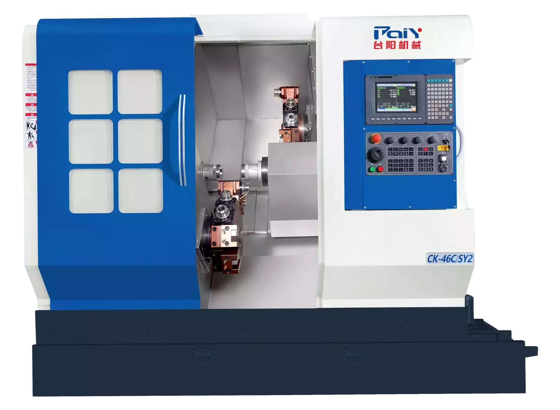 CK-46C/SY2 adopts an advanced"twin-spindle,twin-turret, twin Y-axis'structure.lt is a highly efficient, flexible, and versatile CNC machine toolspecifically designed for complex components, enabling high-precisionautomated composite machining in a single setup.